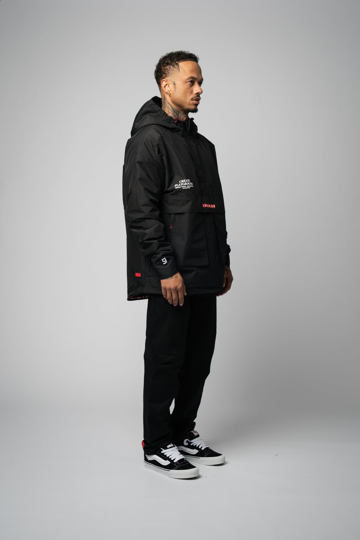 Half-Zip Intermediate Windbreaker mit Kapuze und halblangem Frontzipper. Mehrere Fronttaschen sowie eine zusätzliche Tasche am Ärmel für alle Essentials. Elastische Elemente an Bund und Ärmeln, für eine anpassende Weite. Dezente Logodetails vorne und hinten runden das Design ab. Made to keep up.